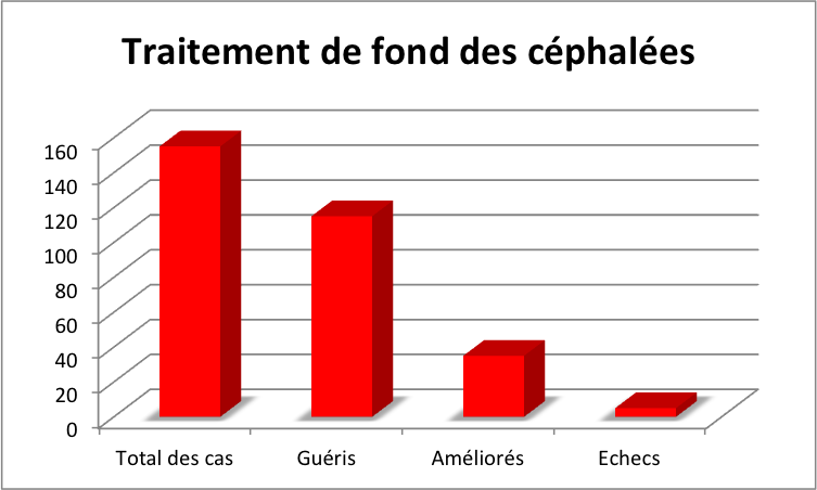 Exemple d'étude clinique réalisée par des médecins. D'après J. Polak : Intérêt de la Brachy-myothérapie dans le traitement de fond des migraines - Ed Mains libres n°2 - 2013